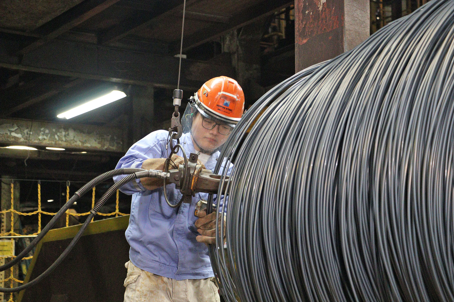 - コイル状の鉄製品から専用の工具でサンプルを採取し、特殊な機械で製品の異常(キズ等)がないか検査しています。