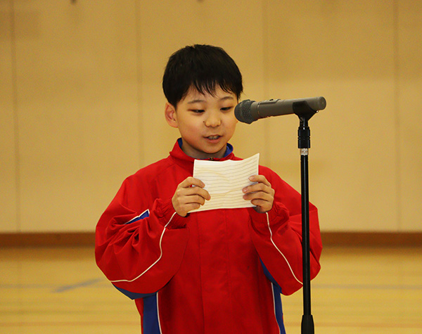 少年団を代表し富岸ミニバス少年団の新谷健太郎さんが、「今日はビブスを寄贈していただきありがとうございます。僕たちはバスケットボールを通して沢山の事を学んできました。仲間と協力してプレイすること、礼儀や挨拶・道具を大切にあつかう事等、監督やコーチ、先輩達の背中をみて学んだ事も沢山あります。いただいたビブスは皆で大切に使います 今日は本当にありがとうございました。」と御礼の挨拶を述べました。