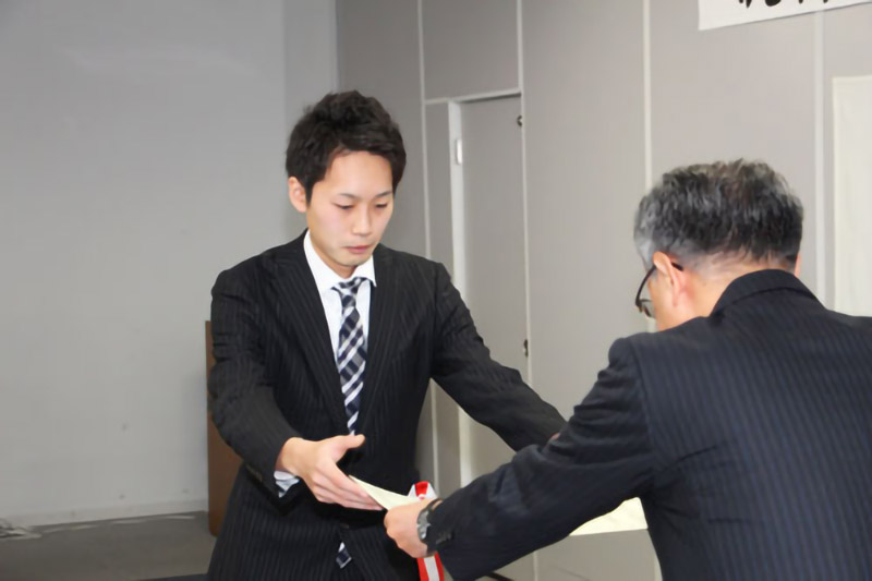 当社から線材課の藤井錬さんと棒鋼課の本野周平さんが表彰されました。お二人は職場の中核として活躍し、上司や職場から厚い信頼を得ている事が認めら、この度の表彰となりました。